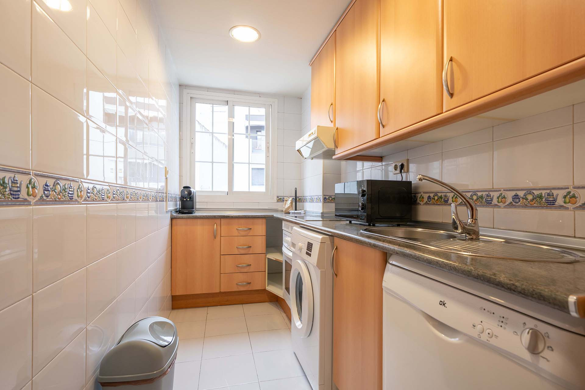 La cocina independiente, de vitrocerámica, está equipada con nevera, horno, congelador, lavavajillas, vajilla/cubertería, utensilios/cocina, cafetera, tostadora y hervidor de agua.