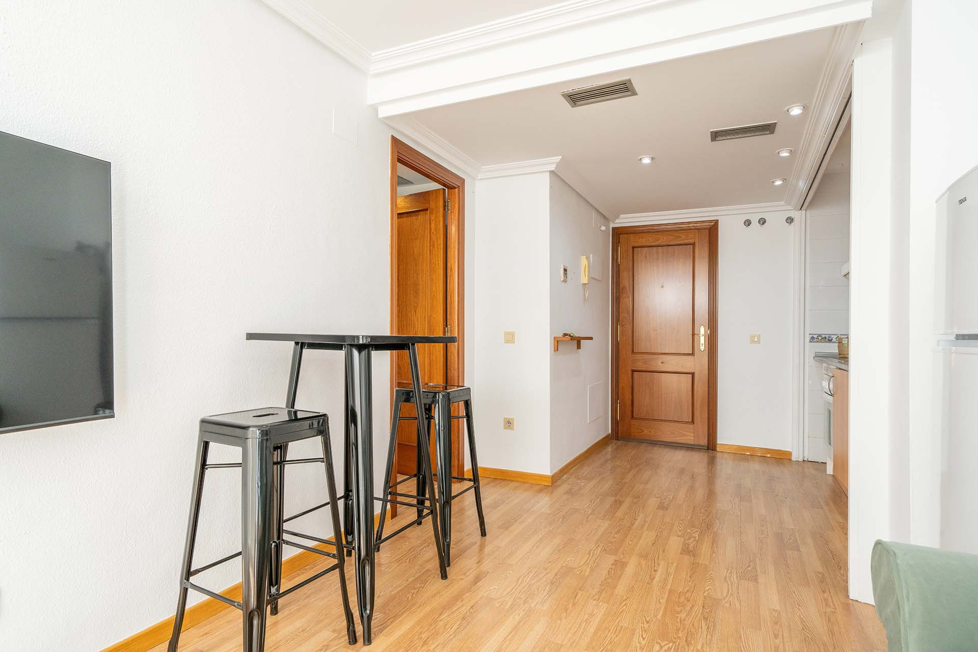 The property is located in a central area of Madrid next to a variety of metro stations and perfectly connected with the main points of interest in the city. Located on the ninth floor and with an elevator, this property stands out for its cozy spaces. It is decorated with neutral tones and has everything necessary for an unforgettable stay. With a double bed bedroom with a wardrobe, a bathroom with WC and Shower perfect for relaxing baths that you will look for at the end of each day exploring the wonders of the city and a living room with sofa, coffee table, TV with cable next to the four-seat dining room, the ideal space to live unforgettable moments of interaction and comfort. The kitchen is small but modern and has all the services and cookware you need to prepare your favorite dishes. Additionally, it has a common use pool in an attic with unbeatable views. If you want to live your next adventure in Madrid in a warm place that makes you feel at home, this property is for you!